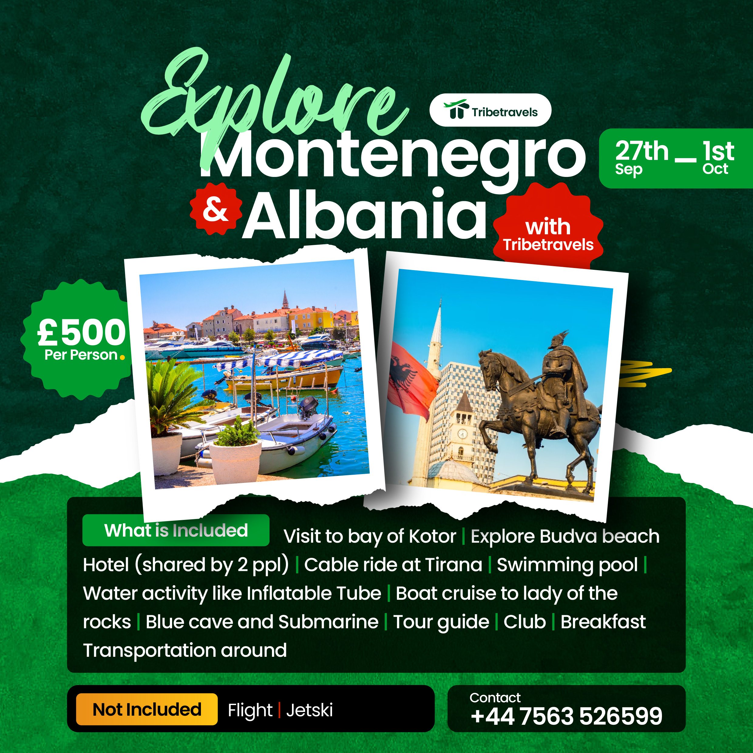 We are offering a curated experience through Montenegro and Albania from 27th September to 1st October, priced at £500 per person. Here’s a breakdown of what’s included and why it’s an attractive offer: